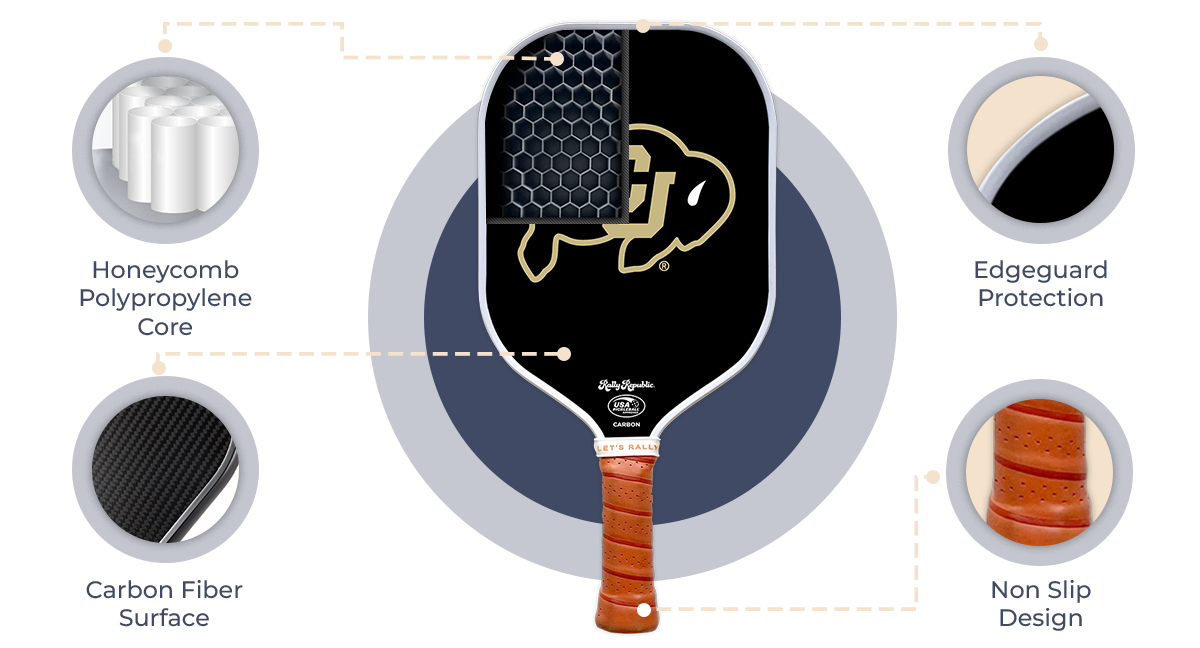 - Officially Licensed: This black pickleball paddle proudly displays the CU Primary Mark, the official logo of the University of Colorado, ensuring authenticity and support for your favorite team.