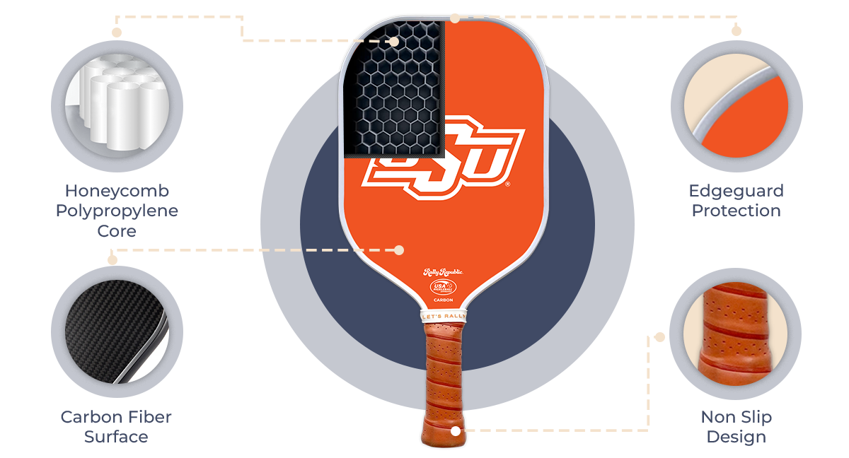 - Vibrant Orange Design: The paddle features a striking orange color that reflects the spirit and energy of the Oklahoma State Cowboys. Stand out on the court and show off your team pride with every swing.