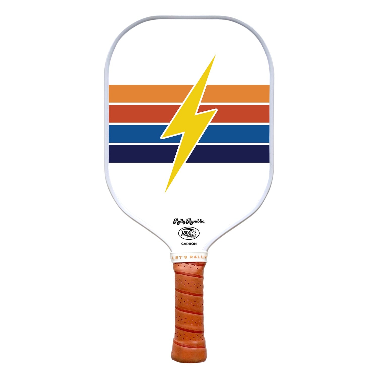 Make a bold statement on the court with The Retro Charge Pickleball Paddle. This paddle is the perfect combination of vintage charm and modern performance. The eye-catching yellow lightning bolt with vintage stripes background is sure to turn heads, while the high-quality surface provides excellent control and consistent play, allowing you to deliver accurate shots with ease. The lightweight design makes it easy to handle and maneuver, making it suitable for players of all skill levels. Whether you're looking for a paddle that makes a statement or just want a stylish and functional tool for your pickleball games, The Retro Charge Pickleball Paddle is the perfect choice.